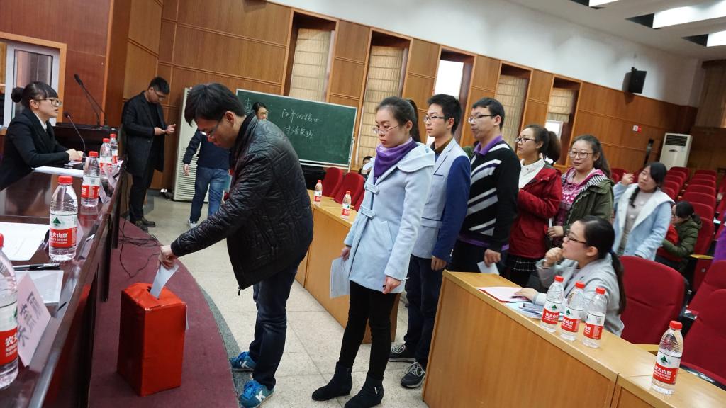 大会由执行主席徐晖主持,俞金波副书记致开幕词,俞书记充分肯定了第八届研会的工作成绩并对以后的研会工作提出了建议与展望。随后,校研会主席高邦旭同学发言,表达了对兄弟学院的支持与肯定。紧接着会议进行了研会委员选举,经过17名候选人的精彩竞选演讲,最终选出了12名委员,组成新一届建工学院研究生委员会。最后,辅导员吴燕丽老师颁发了第八届优秀研究生干部证书并合影留念,吴老师对新一届研会工作做出了初步的安排,并希望研会成员用良好的心态去迎接以后的学习和工作。