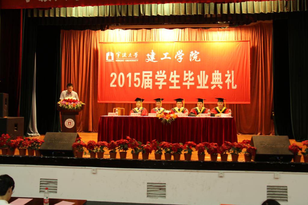典礼的在雄壮的国歌声中拉开了序幕。首先由院党委副书记俞金波宣读2015届优秀毕业生表彰名单,并简单介绍了毕业生情况。接着毕业生代表张雪岩同学作了发言,表达了广大毕业生对未来的美好憧憬,表达了对母校、对学院、对老师的感恩和祝愿。之后郑荣跃院长致毕业贺词,郑院长向学业有成、即将告别母校、踏上新的人生征途的毕业生表示最热烈的祝贺!同时,他向毕业生们提出了四点希望:一是希望毕业生们尽快适应新工作、新环境;二是希望同学们把毕业看做新的起点,继续学习,增强能力;三是希望同学们在今后人生中处理好成家与就业的关系;四是希望每位即将踏出校门的学子牢记母校的培养之恩,铭记老师的教导之情,为社会做多做贡献,成为母校的骄傲,学院的自豪。
