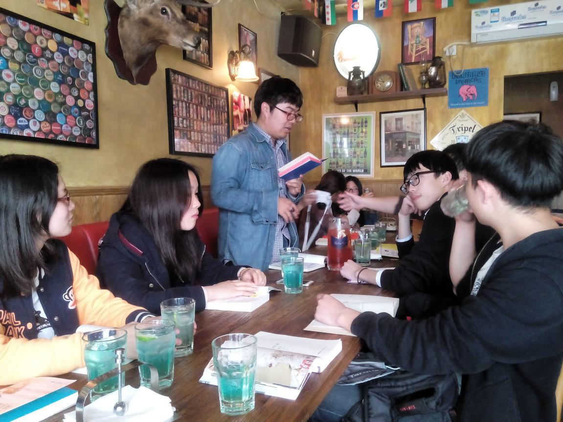 下午1点,同学们到达外滩“比利时茶馆”,并陆续进入活动现场。首先由读书节活动组织者进行活动的介绍发言、流程叙述。之后由同学们向在座的其他人介绍自己想要推荐的书,推荐内容包括对作者写作背景、写作风格的概述,以及此书的积极意义还有自己看完这本书以后印象深刻想与大家分享的地方、心得。