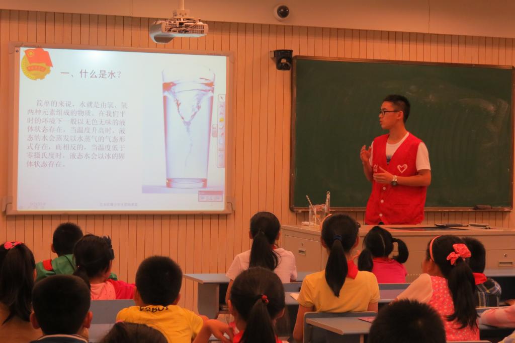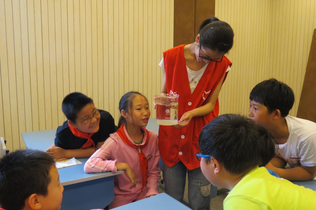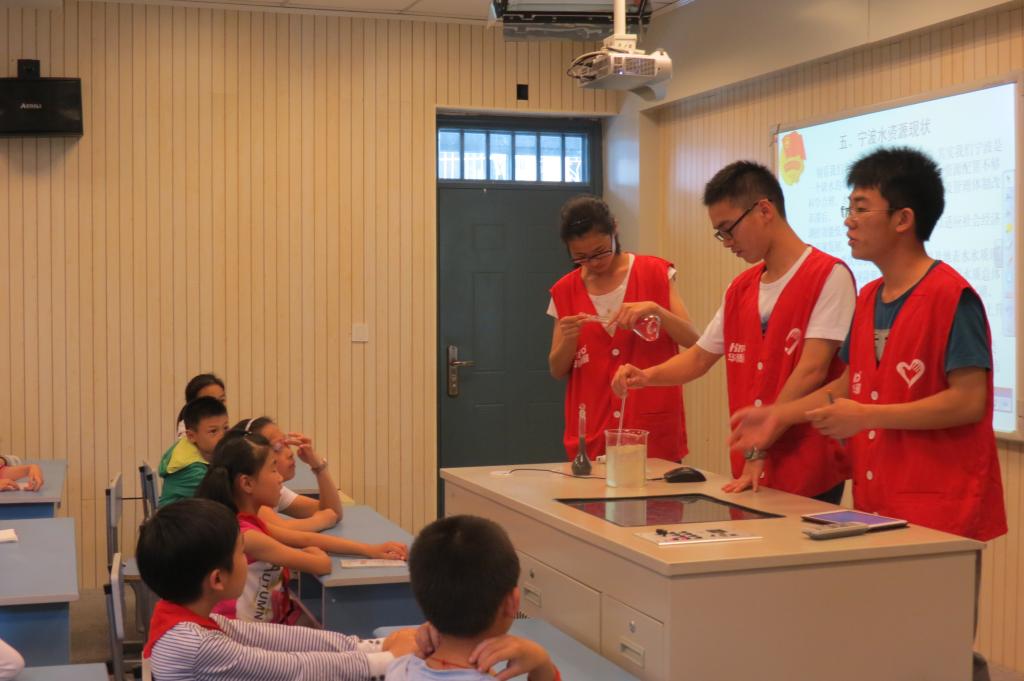 环境工程系的三名志愿者前往江东区荷花庄小学,给该校四年级的小学生上了一堂主题为水密码课堂的公益课。 12点55分,小学生有秩序地入场就座,一点,正式开始上课。环境系的同学先给小朋友们讲述了什么是水,什么是水资源以及水的作用、构成、形态和分布,在提问环节,更是有小朋友给出了“水是生命之源”的具有深度的回答。志愿者们还讲解了宁波水资源的现状,如何保护水资源,如何净化水。小朋友们也很积极地回答了他们所了解的净化水的方法:过滤、煮沸、沉淀等等。而环境系的志愿者演示的正是絮凝剂沉淀法净水,原来一杯黄黄的有悬浮杂质的污水,在化学药剂的作用下,杂质沉淀下来,得到了上层清澈的水,吸引了小学生们的目光,更有人奇思妙想说道:下面的一层(絮状杂质)好像棉花啊。小学生的世界就是如此天马行空。实验结束后,志愿者又从小学生的角度讲解了作为一名小学生能为保护水资源、节约用水做哪些事情,鼓舞每一个人带动家长,从身边的小事做起。 (张雨舒 供稿)