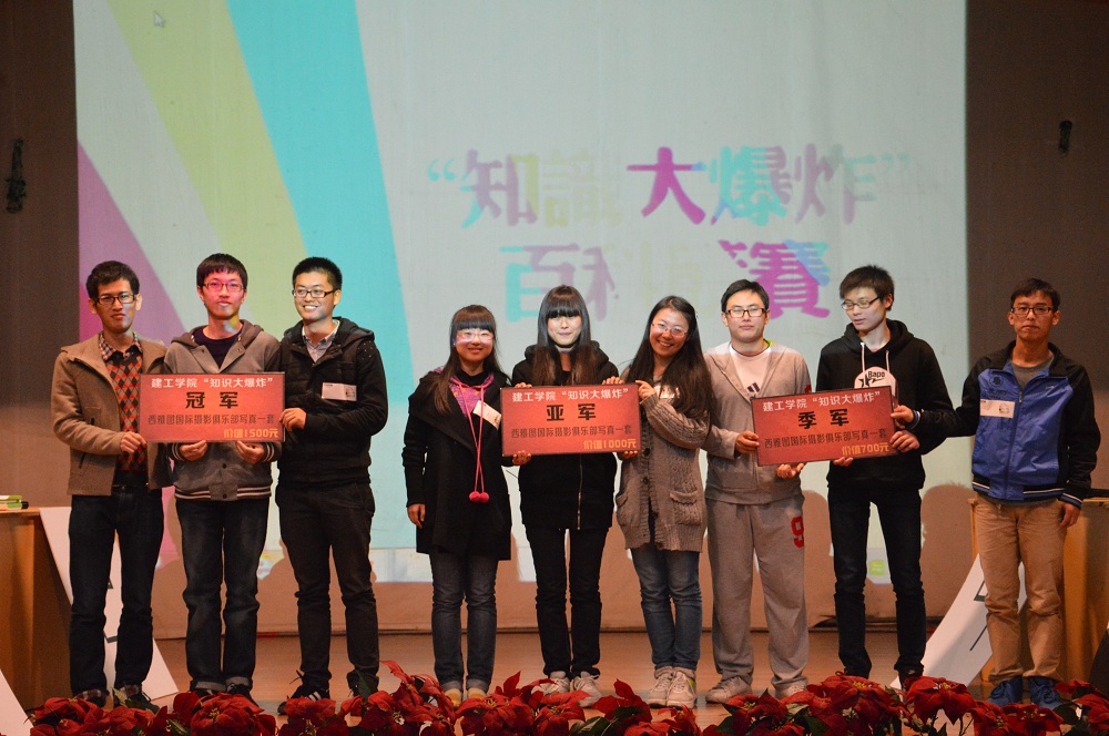 11月19日晚6点半,“知识大爆炸”百科竞赛决赛在锦绣小剧场隆重举行。建工学院团委书记沈妍伶老师、院学工办周双双老师、吴燕丽老师及其他学院学生会主席及学生代表出席了本次活动。
