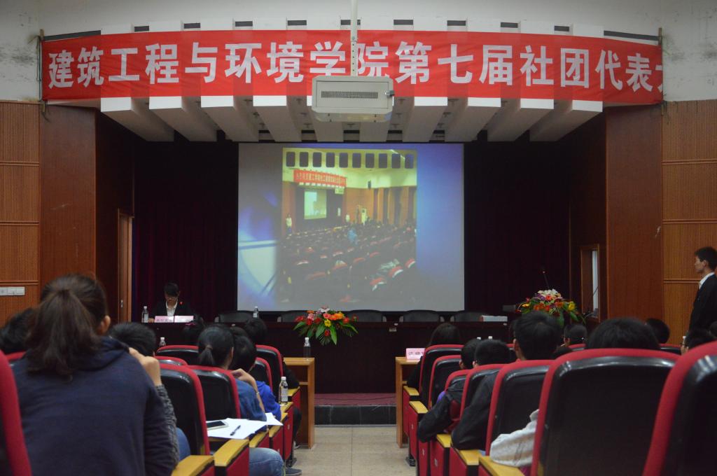 2013年10月19日晚,亚洲AV 第七届社团代表大会在学院报告厅隆重召开。学院团委书记沈妍伶老师、校社团委副主席曹心仪同学、院社工委主席胡成宝同学及各社团代表出席了此次大会。