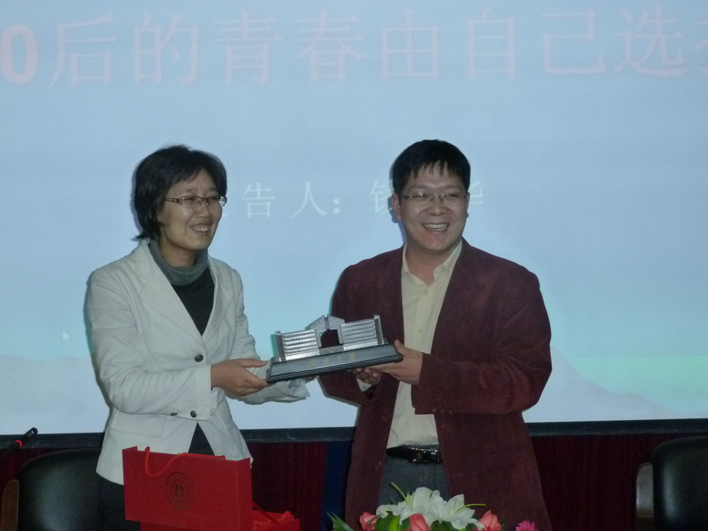 建工学院建筑工程专业,曾任宁波工程学院电信学院党总支副书记,党委宣传部副部长及宁波市科技特派员、农村指导员等。报告会上,钱雪华校友结合自身的经历,勉励广大同学在学习和工作中要多一点执着,多考虑细节,要有长远眼光和责任感,同时要培养团队精神和政治意识,乐观面对大学生活及今后的工作与人生。
