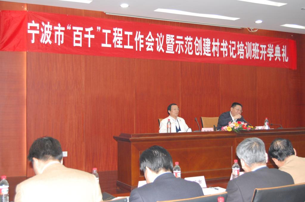 留学生公寓4F报告厅举行。参加典礼的有各县(市)区委或政府分管领导、“百千”办主任或副主任、宁波市新农村建设研究中心主任、07年度重点创建示范村书记,市“百千”工程协调小组相关成员单位负责人120名,市政府陈炳水副市长出席会并作重要讲话。