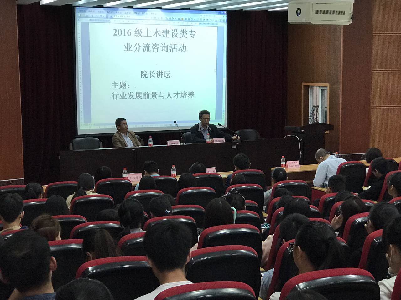 在学院报告厅举办了面向阳明学院土木建设类2016级学生专业分流咨询活动。学院院长郑荣跃教授、副院长刘干斌教授以及各专业负责人与专业教师参加了此次活动。与会学生达到150多人。