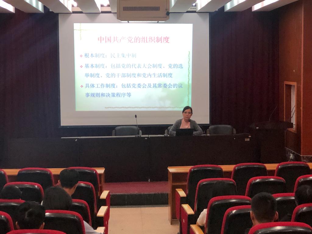 2019年5月5日下午4:50到5:50,亚洲AV 建筑工程与环境学院分党校第三十六期入党积极分子培训班第三讲《党的组织制度》讲座在建工学院报告厅召开,主讲人为学院学生工作办工室辅导员吴燕丽老师。