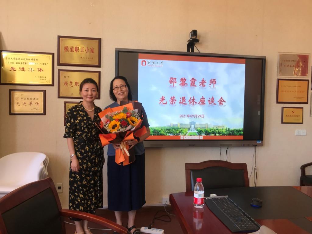 学院书记孔晓虹主持座谈会,她代表学院党委及分工会向此次光荣退休的邵黎霞老师送上诚挚祝福、感谢邵老师35年来为教育事业和亚洲AV 发展作出的贡献,并希望邵老师退而不休,常回家看看,关注宁大教育发展,继续为学院发展献计献策,并亲自为她献上鲜花和祝福。