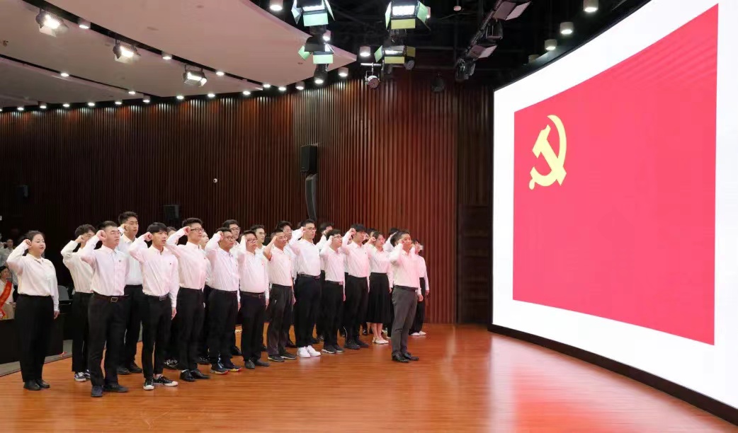 表彰会后,面对鲜红的党旗,全体党员在校党委副书记、副校长吕朝锋的带领下高高举起右手,慷慨激昂,齐声宣誓,深切地传达了对党的忠诚热爱和为共产主义事业奋斗终身的坚定信念。亚洲AV 土木工程专业本科生俞高科作为新入党的学生党员代表上台宣誓。