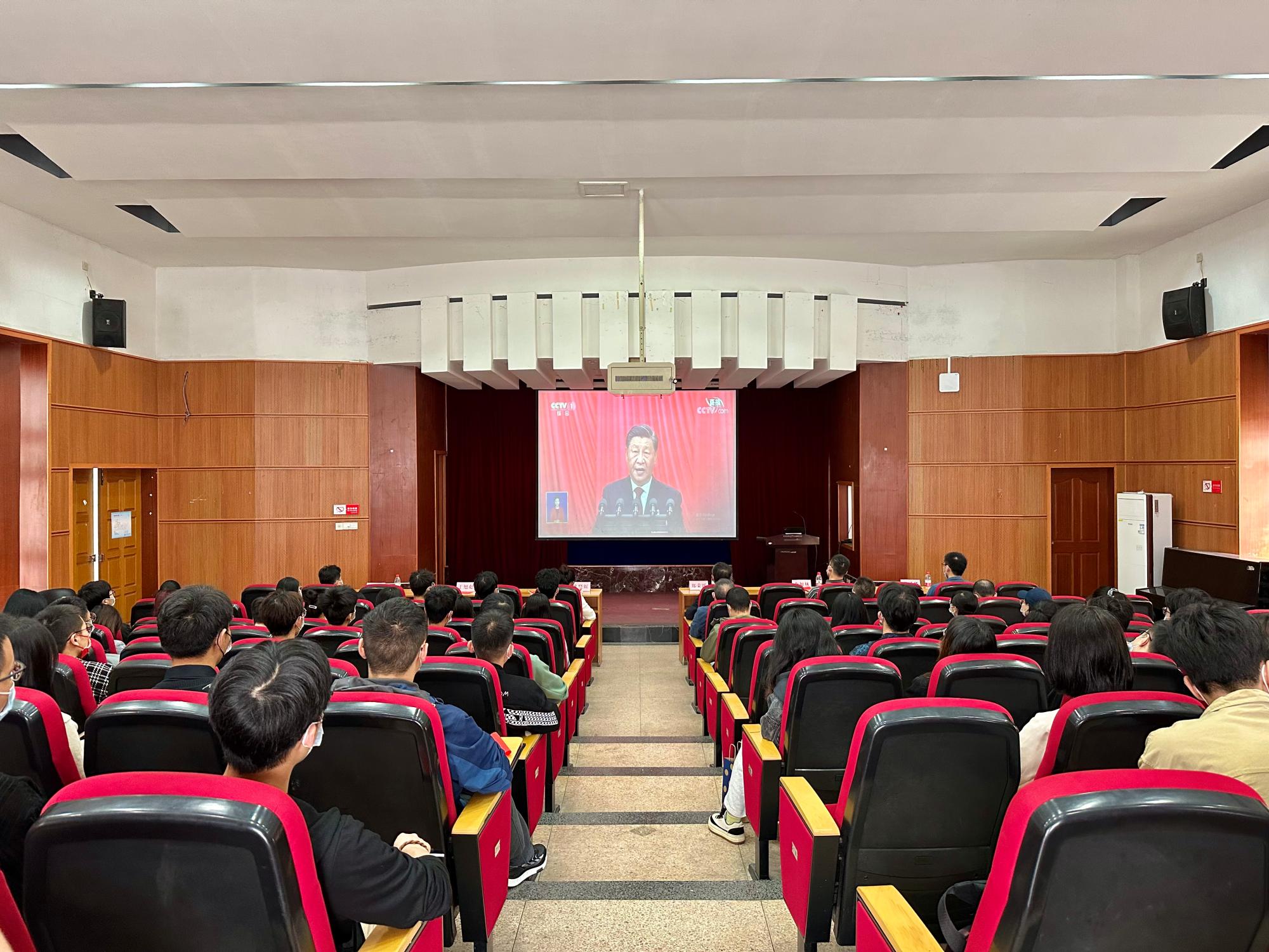 当雄壮的国歌声在人民大会堂奏响时,亚洲AV 一楼报告厅也一片庄严,学院党政领导班子成员、各师生党支部委员、师生代表等集聚在一起,怀着无比激动的心情共同收看了大会实况直播,认真聆听、学习了习近平总书记代表第十九届中央委员会所作的报告,喜迎盛会的胜利召开。