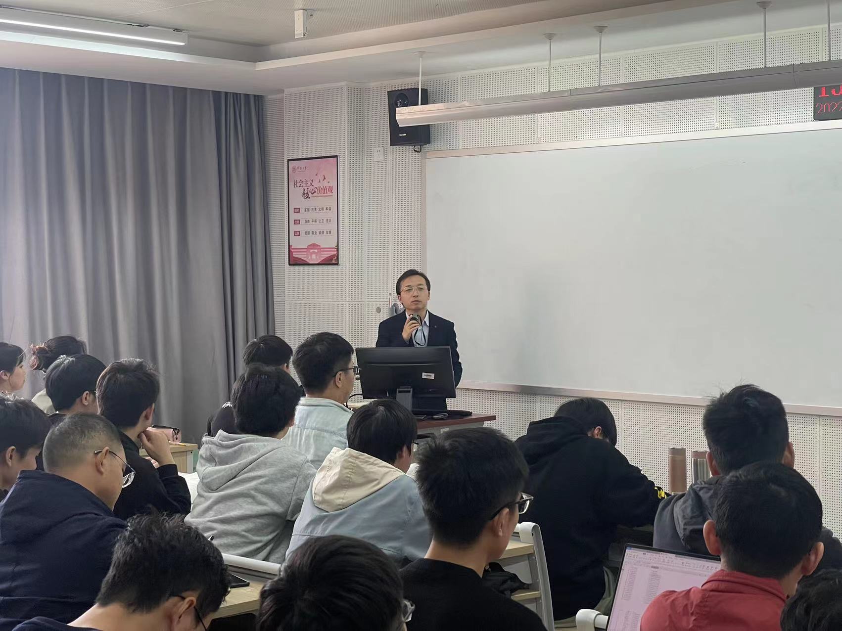 观摩课后,亚洲AV 分管教学工作副院长章子华老师主持了研讨活动。听课教师们对此次公开观摩课给予了高度评价,一致认为汪炳老师备课充分,讲课条理清晰、课程内容详实、教学手段多样化,师生互动良好,堂课紧跟社会热点问题,自然融入思政元素,起到了良好的示范作用。