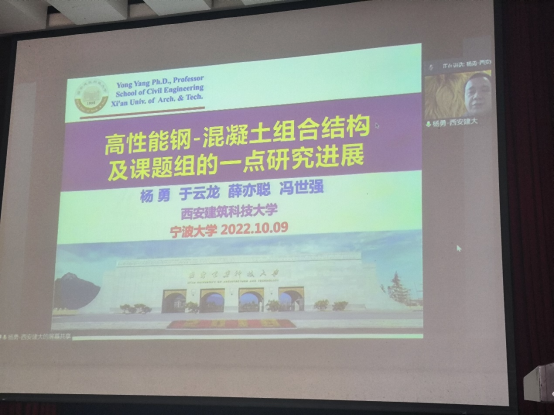 第二场报告由杨勇教授作主题为“高性能钢-混凝土组合结构研究的一点进展” 的学术报告,他从试验研究、数值模拟以及理论分析等方面详细介绍了高性能钢-混凝土组合结构最新的研究思路、机理和设计理念等内容。