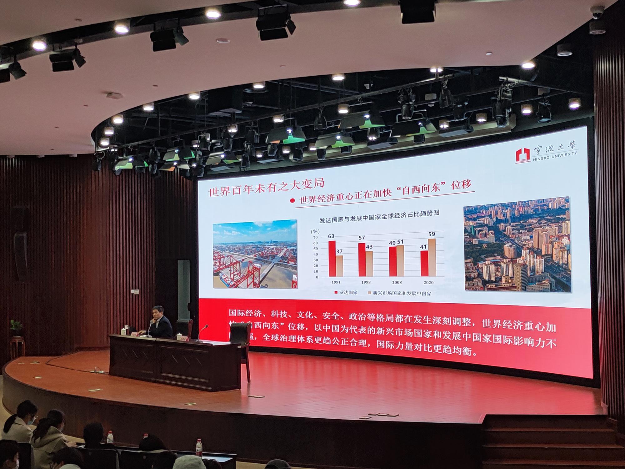 吕朝锋深刻阐述了党的二十大的重大意义,并通过大量的数据、实例以及国内外求学、访学的亲身经历,客观、科学地分析了当前国内外形势以及潜在机遇。他强调,青年是推动人类社会发展的生力军,是推动中华民族进步的源泉,是实现中华民族伟大复兴的先锋力量。吕朝锋循循善诱、谆谆教导广大宁大青年师生,要心怀宁大,与逆袭的年轻宁大一道,踔厉奋发、勇毅前行,积极秉承“实事求是、经世致用”的校训精神,做一名敢于追梦的宁大人。