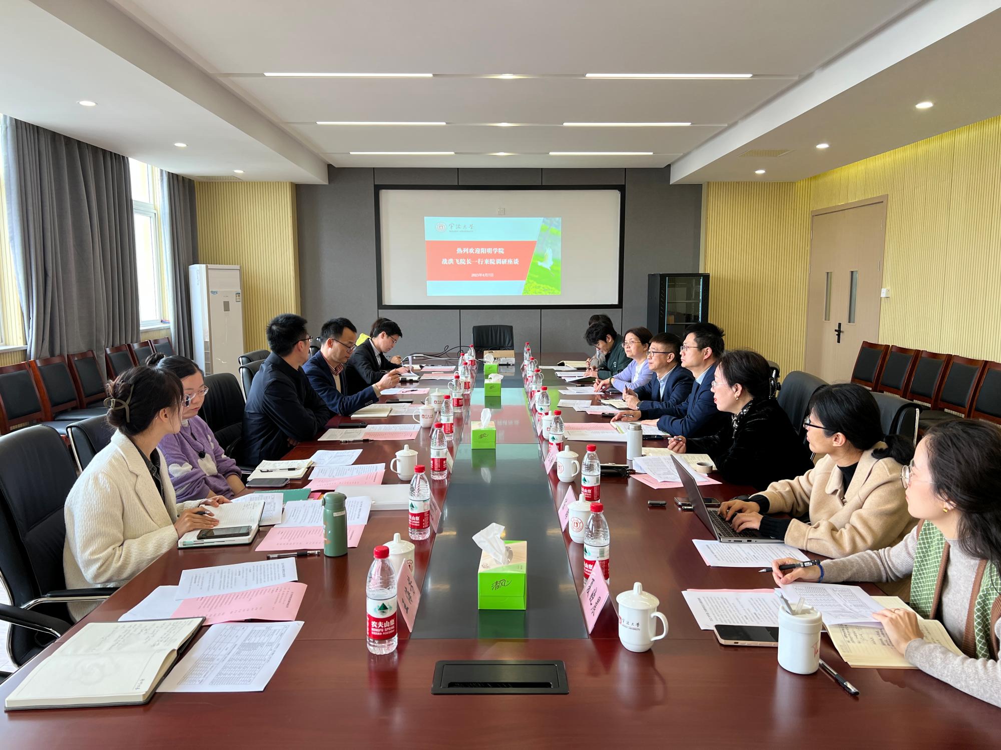 首先,李加林书记对战洪飞院长一行的到来表示诚挚的欢迎;战洪飞院长简要介绍本次调研内容,并分享了阳明学院大一新生关于土木专业学生的相关数据。调研会围绕阳明学院未来工作的建议、大类培养和管理、阳明创新班培养和管理等方面展开。