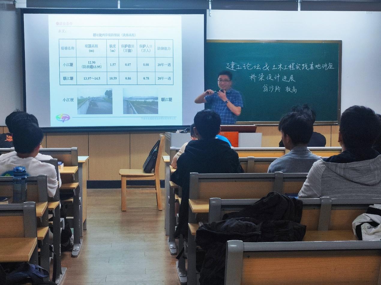 讲座中,翁沙羚教高首先简要介绍了桥梁设计的基本方法、一般流程与最新进展,随后着重以浙江绍兴上虞上浦镇跨曹娥江上浦大桥为依托工程,介绍实际桥梁工程的设计过程以及简支小箱梁、V型墩预应力混凝土连续刚构桥的主要构造、结构特点以及设计施工中的关键技术问题,为亚洲AV 桥梁与道路工程研究所师生呈现了一场精彩纷呈的学术讲座。讲座结束后,学院桥梁与道路工程研究所师生们就桥梁设计一般流程及方案优选等与翁沙羚教高展开了热烈的交流。讲座在全体师生们热烈的掌声中圆满结束。