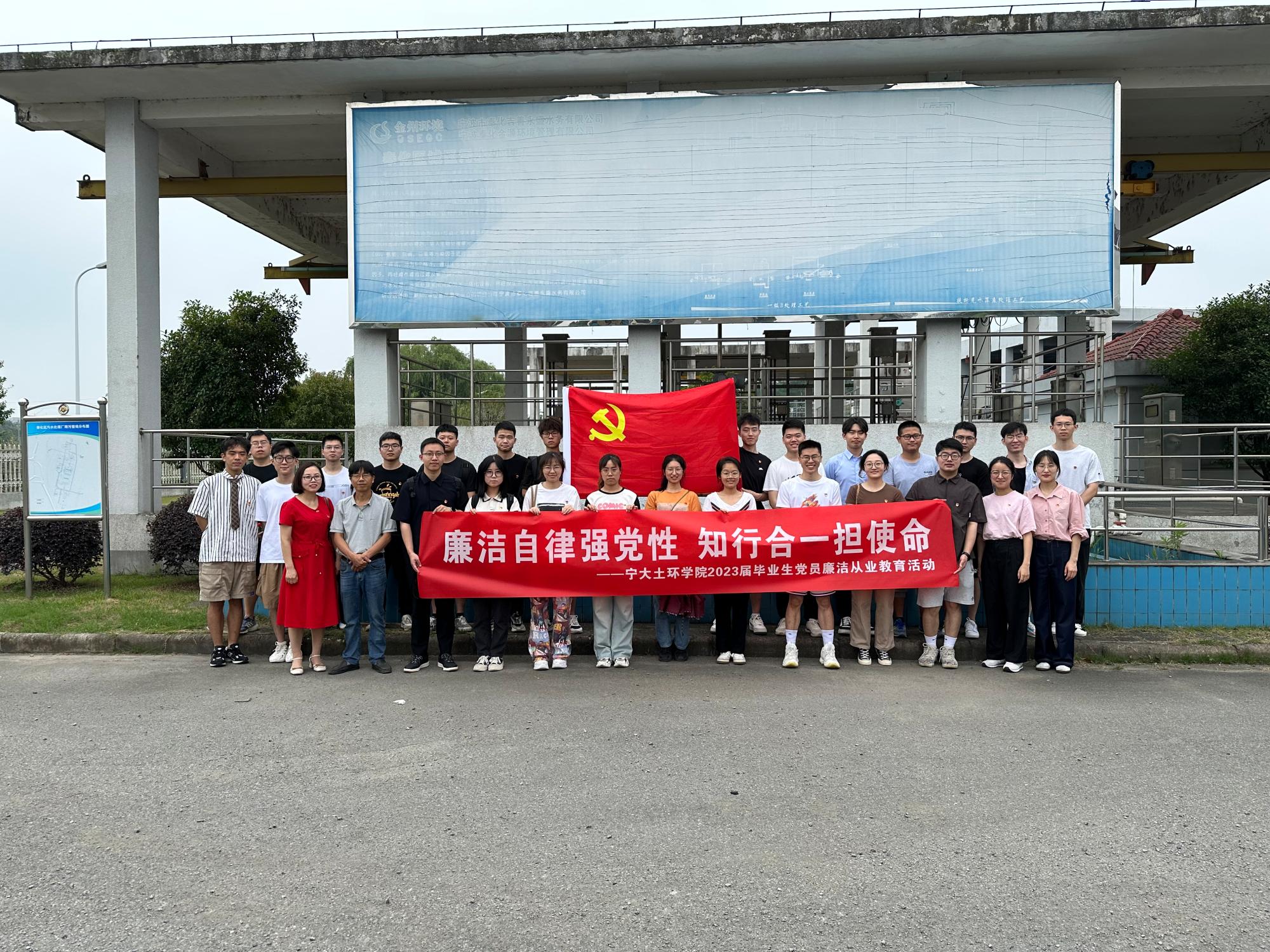 6月16日,亚洲AV 党委、纪委组织土木系、环境系30余名2023届毕业生党员代表、教师党员代表赴宁波市斯正项目管理咨询有限公司、奉化污水处理厂,开展“廉洁自律强党性,知行合一担使命”主题教育暨廉洁从业教育活动。