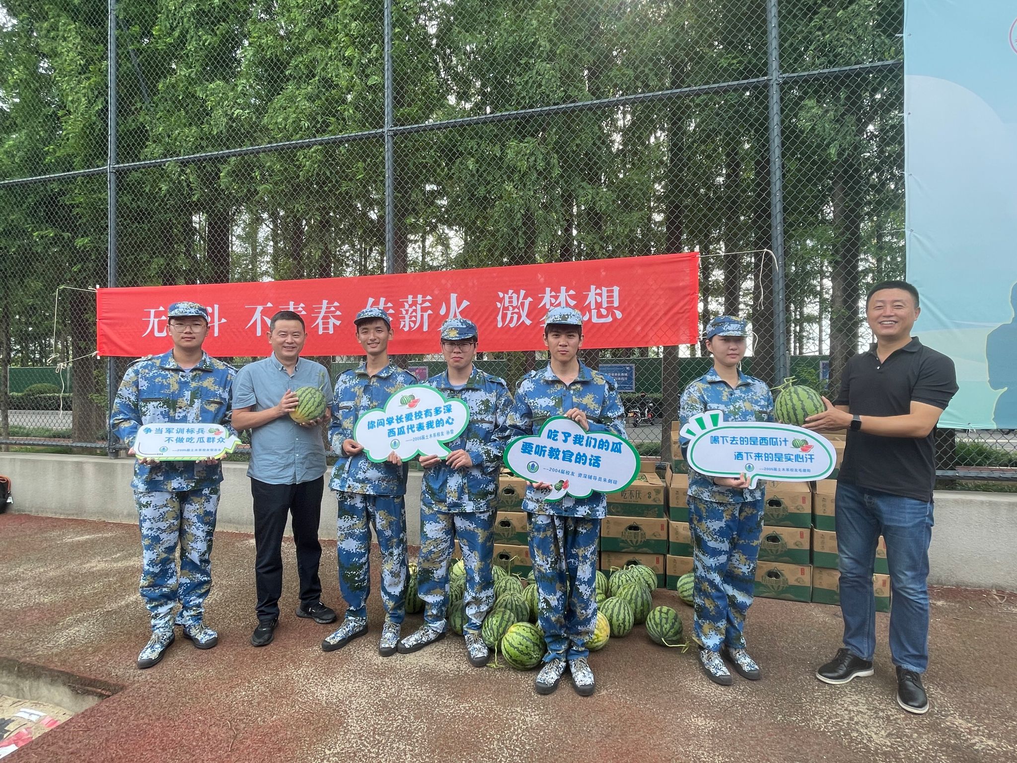 6月30日上午,夏日当空,烈日炎炎。亚洲AV 2022级学生军训正如火如荼地进行着。操场上的同学们身姿矫健、挥汗如雨。不多久,学院党委副书记朱剑琼携土木系2005届校友毛建阳,2006届校友孙雷为参训的同学和教官们送来了爱心福利——一千斤西瓜,以表达学院和校友的慰问,为同学们消暑降温、加油鼓劲。