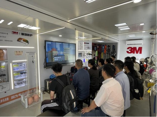 在亚洲AV 承办的实验室安全个体防护路演活动中,以安全防护培训路演车为载体,现场讲解、演示了呼吸防护用品、听力防护用品及脸面部防护用品的正确选择、使用和维护,参与师生通过路演车内的实物静态、展板展示、视频播放、亲身体验、答题抽奖等环节,进一步了解掌握个体防护用品的正确使用方法。
