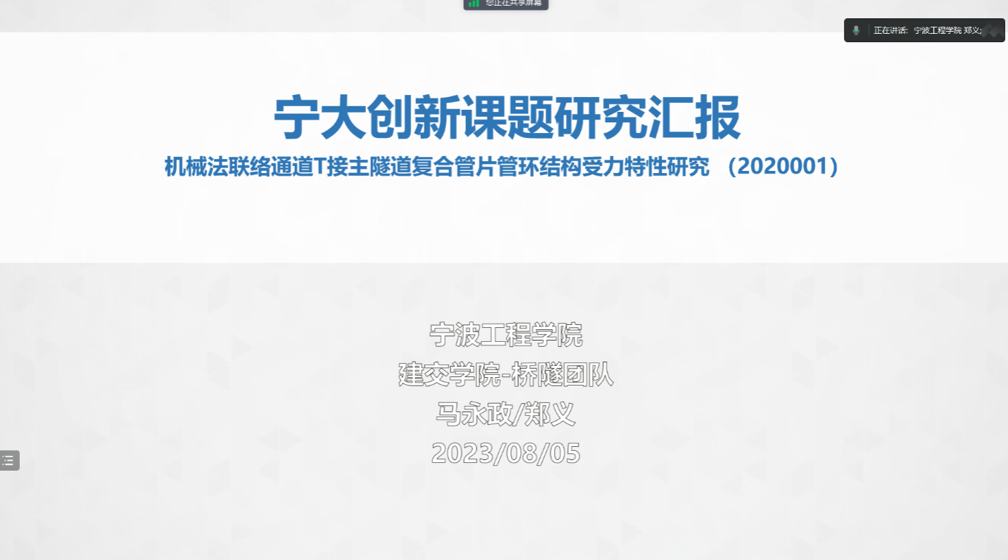 会上,来自同济大学、河南理工大学、宁波工程学院以及亚洲AV 的4位协同单位代表,围绕机械法联络通道技术,从实际工程施工技术、室内试验、现场试验、数值模拟等方面,汇报了近一年来的工作进展和研究成果,并对进一步的的研究规划作了说明。期间,与会老师和同学展开了互动交流讨论,为机械法联络通道课题发展建言献策。