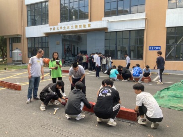 秋风送爽,首批35名本科生在亚洲AV 土木工程实验室外空地开展了劳动实践,学生们分为4个小组,指导老师团队由贺智敏、林云、叶陈振、周晔四位老师及三位从工程单位聘请的工匠组成。