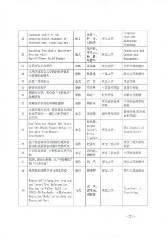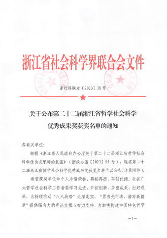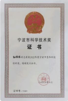 获浙江省科学技术奖二等奖2项,浙江省哲学社会科学优秀成果奖青年奖1项,宁波市科学技术进步奖一等奖1项,宁波市科学技术进步奖二等奖1项,宁波市青年科技创新奖1项,宁波市第十八次(2021-2022)哲学社会科学优秀成果二等奖1项、优秀奖1项。