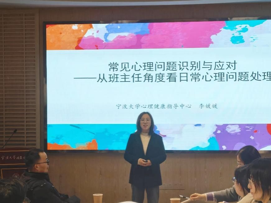 李媛媛老师从班主任日常工作实际出发,深入浅出地讲解了大学生常见心理问题的识别方法和应对策略。她从心理困扰、心理障碍等不同层面进行分析让班主任们深刻认识到关注学生心理健康的重要性,并掌握了有效的干预方法和沟通技巧。与会班主任们认真聆听、积极记录,纷纷表示受益匪浅,将在今后的工作中更加注重学生心理健康的维护。