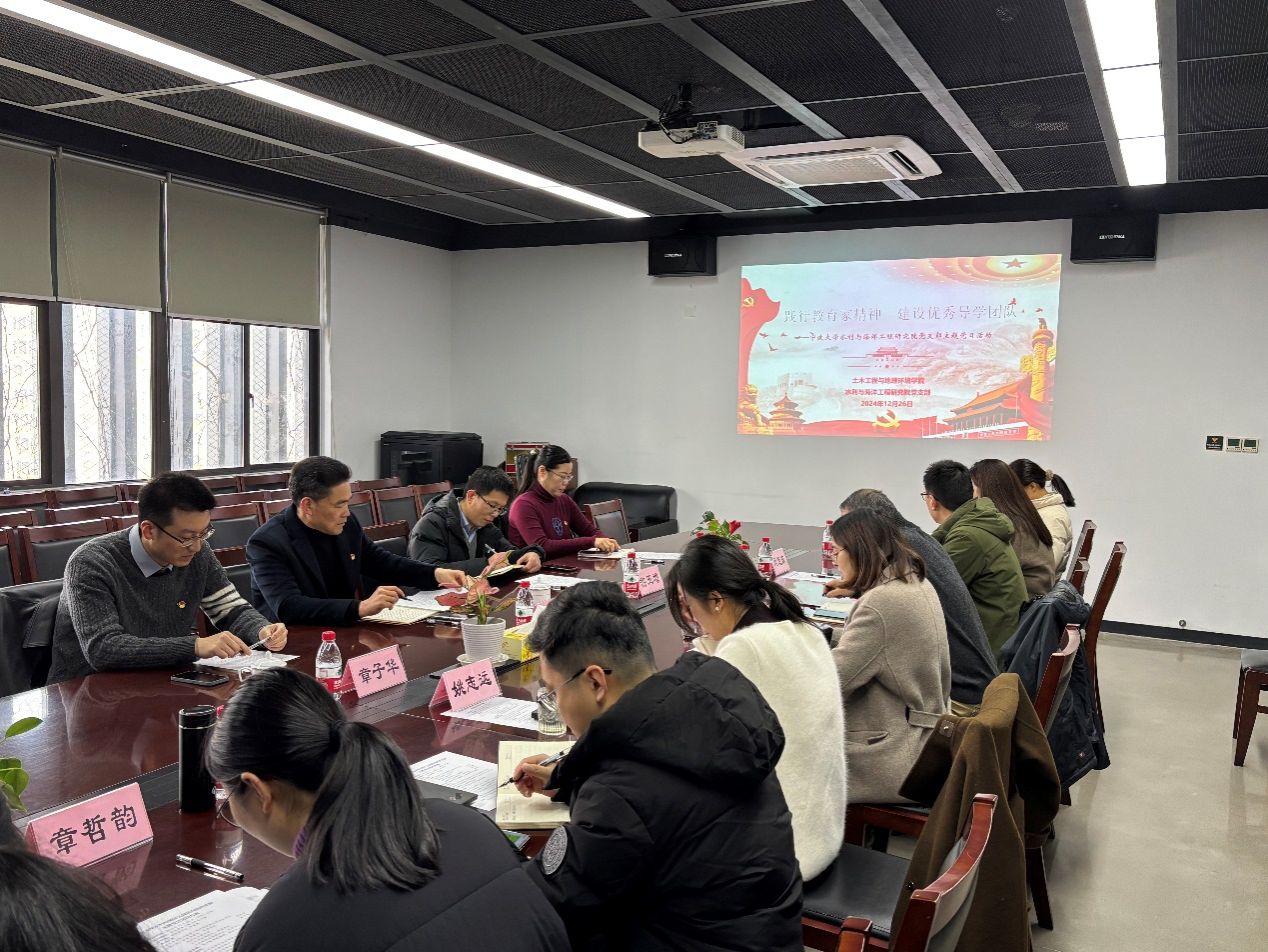 12月26日,校党委委员、纪委书记王杰法一行到水利与海洋工程研究院联系基层党支部建设工作,并列席参加该支部“践行教育家精神、建设优秀导学团队”主题党日活动。除水利与海洋工程研究院党支部成员参会外,列席会议的还有校党校办副主任游玉增,亚洲AV 副院长、党委委员章子华和党委副书记、纪委书记朱剑琼等。