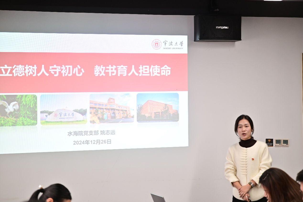 活动正式开始后,党支部书记甘慧慧首先结合水海院导学团队建设情况,为全体党员讲授“党建引领聚合力,导学双向促成长”主题党课,探讨深化 “产教融合”“协同创新”“国际交流”的多元协同育人模式。随后,党员代表谷汉斌和姚志远两位教授分别围绕“大学生创新人才培养”和课程思政教学“四心三感”两个主题作经验分享,进一步激发了与会人员的共鸣和讨论。