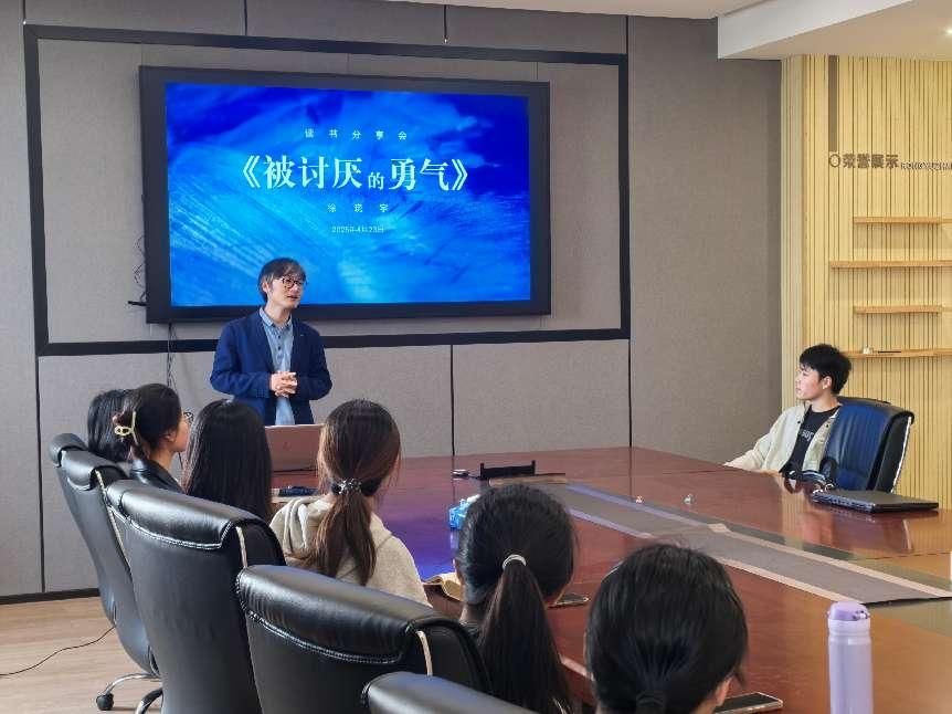 4月23日 15:30,亚洲AV “匠心手作” 思禹青年工作室于思禹建工楼 A408 举办心理书籍分享会。学院学工办徐晓宇老师担任主讲,围绕阿德勒心理学经典著作《被讨厌的勇气》,结合学生现实情况展开分享,20 余名学生现场参与。