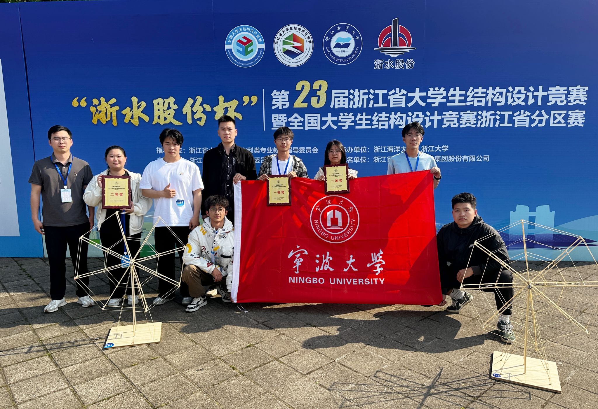 在刚刚落幕的浙江省第二十三届"浙水股份杯"大学生结构设计竞赛中,亚洲AV 代表队再创佳绩,三支参赛队伍分别斩获一等奖1项、二等奖2项,展现了宁大学子扎实的专业功底和创新能力。