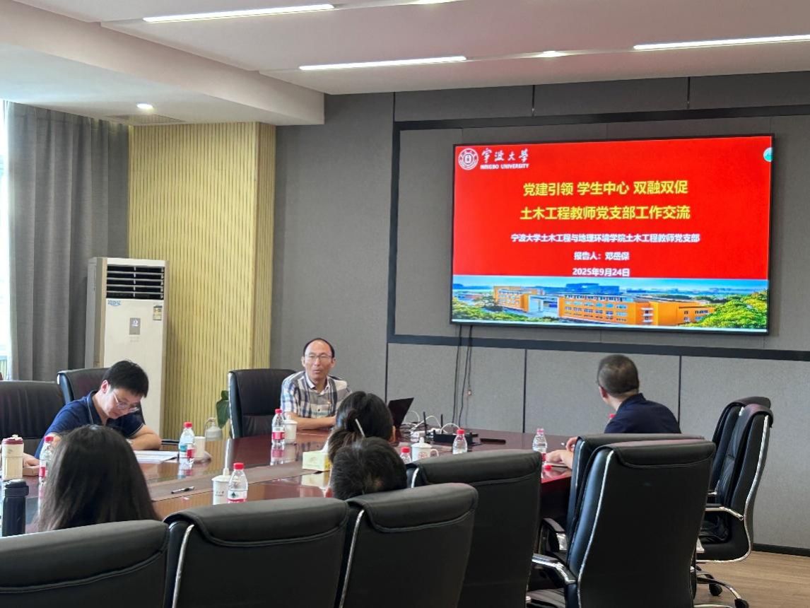 在经验交流环节,学院土木工程教师党支部书记邓岳保就支部的组织建设、教学科研、服务师生等方面的有效做法与成果进行交流分享。