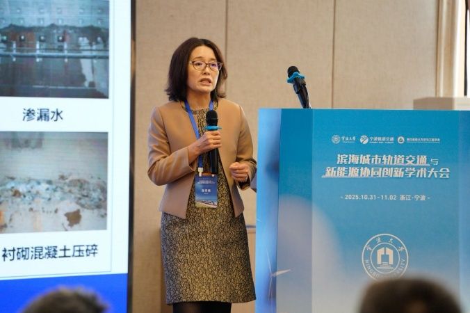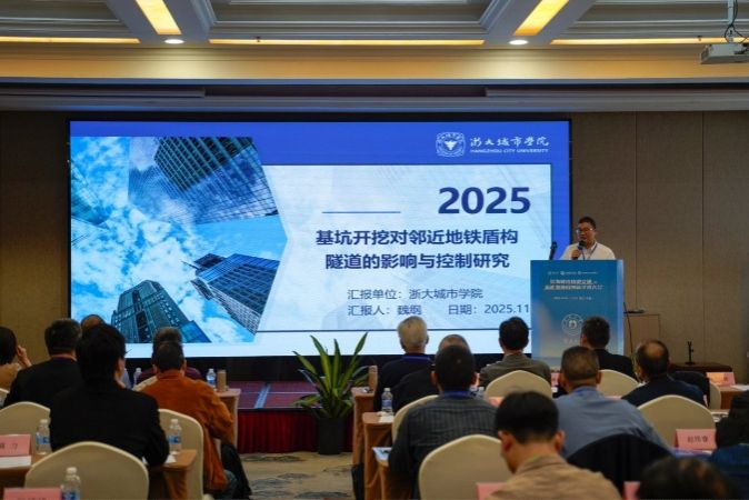 在随后进行的主题1特邀报告环节,聚焦“滨海城市轨道交通数智化协同创新”,多位专家分享了智慧轨道、智能运维、数字孪生技术、大数据分析及人工智能在轨道交通规划、建设、运营与管理中的最新研究成果与实践经验,探讨了数智化技术如何提升滨海城市轨道交通系统的安全性、效率与服务品质。报告包括浙江大学边学成教授的“盾构隧道运维大数据与智能化关键技术”、同济大学张冬梅教授的“机器学习赋能盾构隧道结构沉降变形预测方法研究”、浙大城市学院魏纲教授的“基坑开挖对邻近地铁盾构隧道的影响与控制研究”、浙江省建筑设计研究院刘兴旺正高级工程师的“软弱土地铁隧道径向水泥土桩加固技术(TJS工法)新进展”,以及宁波市轨道交通集团有限公司姚燕明正高级工程师的“宁波至慈溪市域(郊)铁路工程零距离下穿既有运营车站(U-BIT)方案”。
