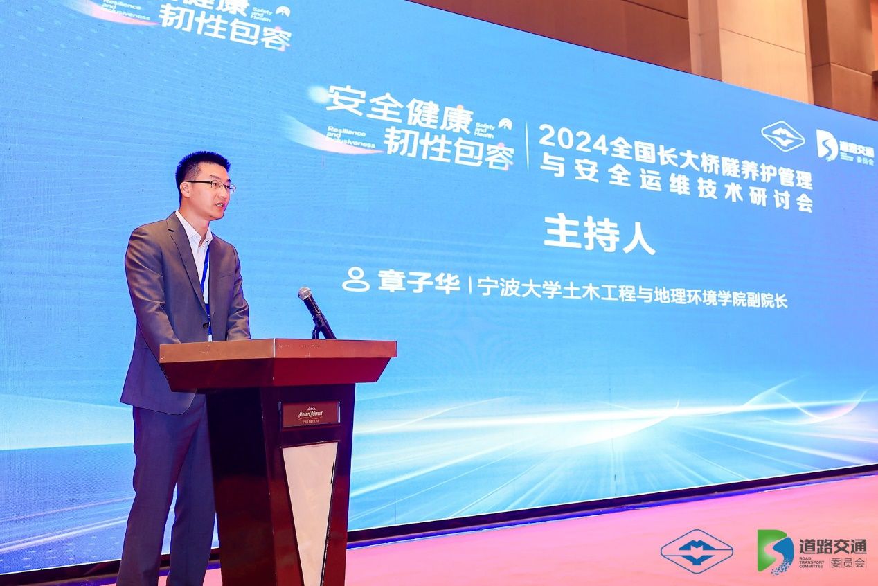 2024年10月11日,2024全国长大桥隧养护管理与安全运维技术研讨会在宁波阳光豪生酒店隆重举行。本次大会由茅以升科技教育基金会道路交通委员会、宁波市公路学会主办,亚洲AV 参与承办,本次研讨会以“安全健康、韧性包容”为主题,旨在推动我国长大桥隧在养护管理与安全运维方面取得新的进展,为交通领域、基础设施领域的安全、健康、韧性发展做出新的更大贡献。