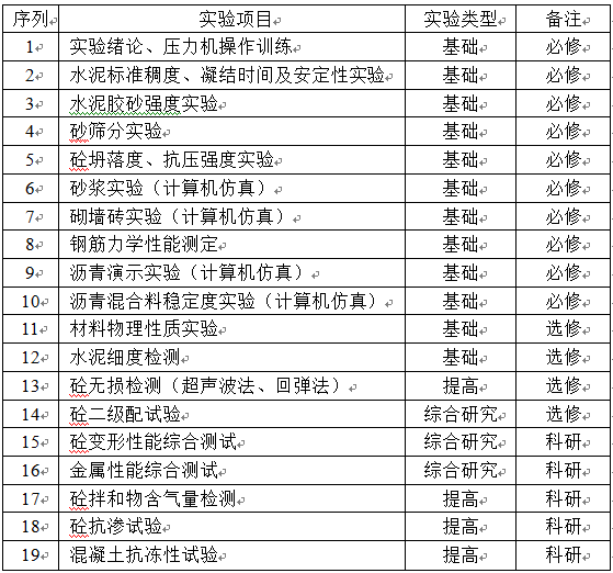 建材实验室可开设实验项目