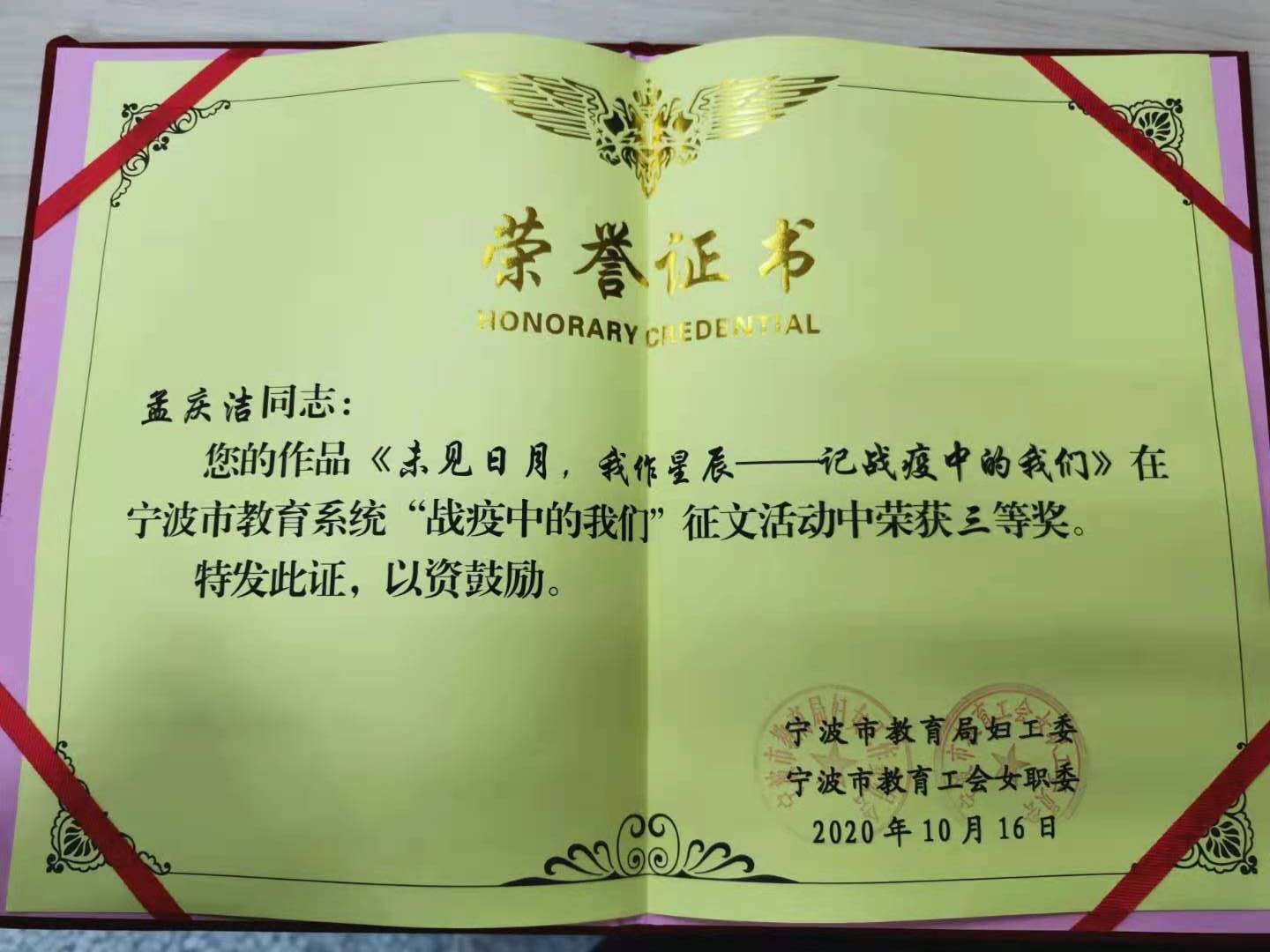 2020年10月--“战疫中的我们”征文比赛