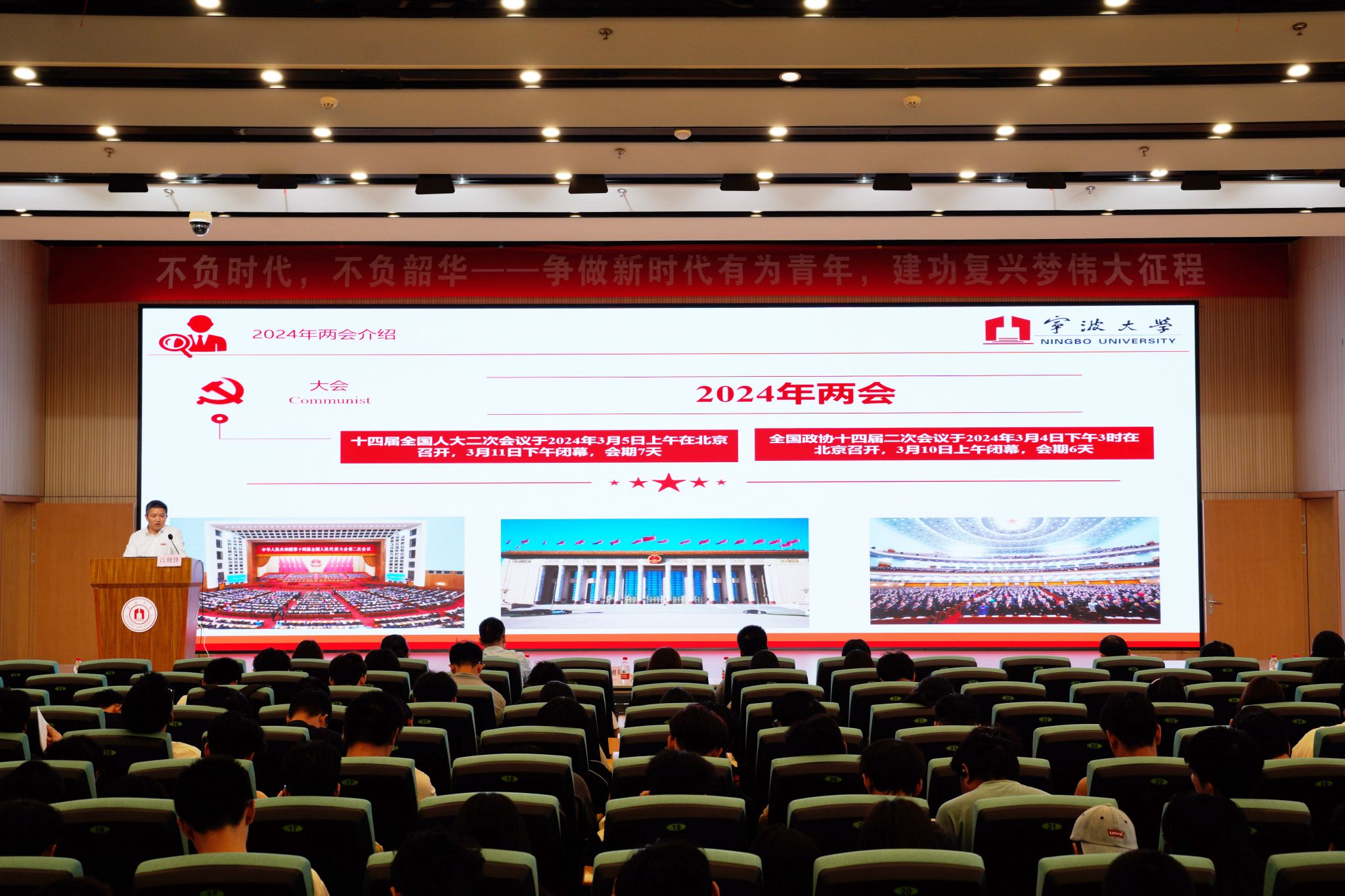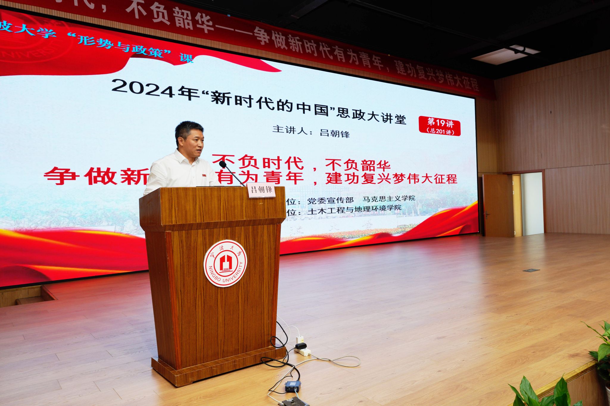 在这堂大思政课上,吕朝锋以“不负时代,不负韶华——争做新时代有为青年,建功复兴梦伟大征程”为主题,结合党的二十大精神和两会热词,通过对“四个之问”“两个大局”等的深入阐释,勉励在场师生奋力书写为中国式现代化挺膺担当的青春篇章,实现中华民族伟大复兴梦。