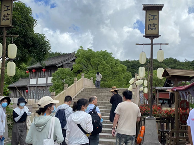 7月2日,同学们来到象山影城,了解影视城主要内部构造与规划,运营的基本运作机理,以及影视城发展对地方产生的一系列附加效应。并对游客发放旅游感知问卷,尤其围绕“民国城”进行访问,了解游客对民国城的怀旧感知。