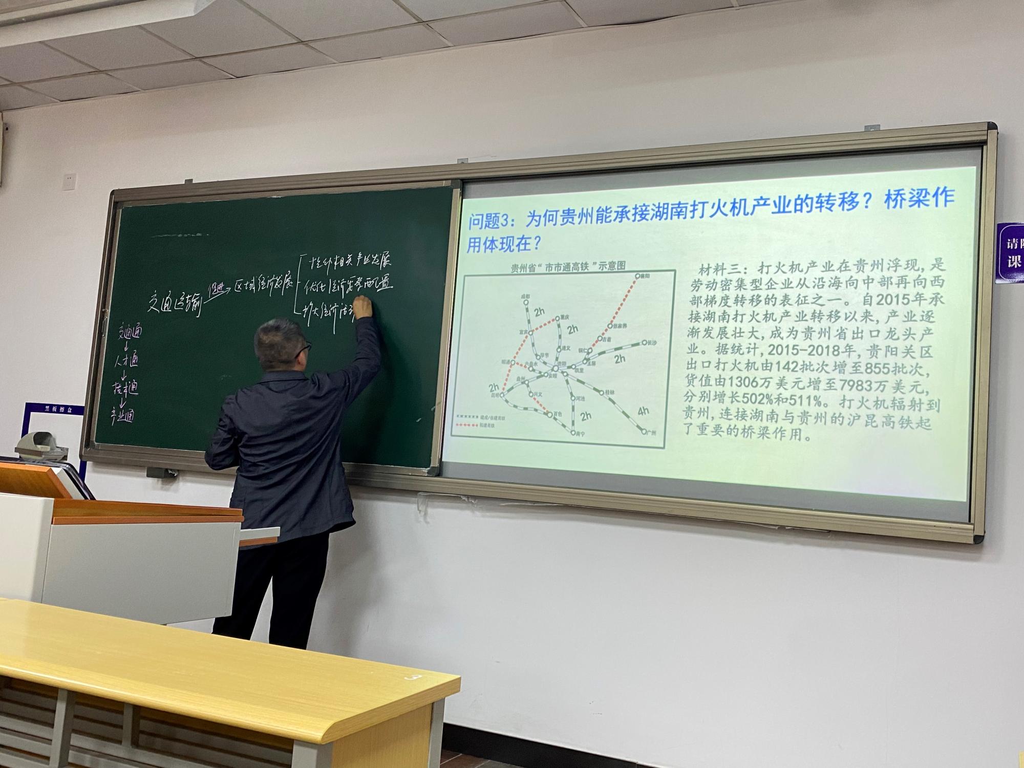 2022年11月5日,高中地理示范课观摩活动在8号教学楼404教室顺利开展,本次活动主题是“高中地理必修课教学展示活动及教学设计探讨——以交通对区域发展影响为例”。观摩本次活动的同学有2020级地理科学(师范)全体本科生、2022级学科教学(地理)全体研究生以及其他年级的部分地理科学(师范)本科生、学科教学(地理)研究生、地理学研究生。