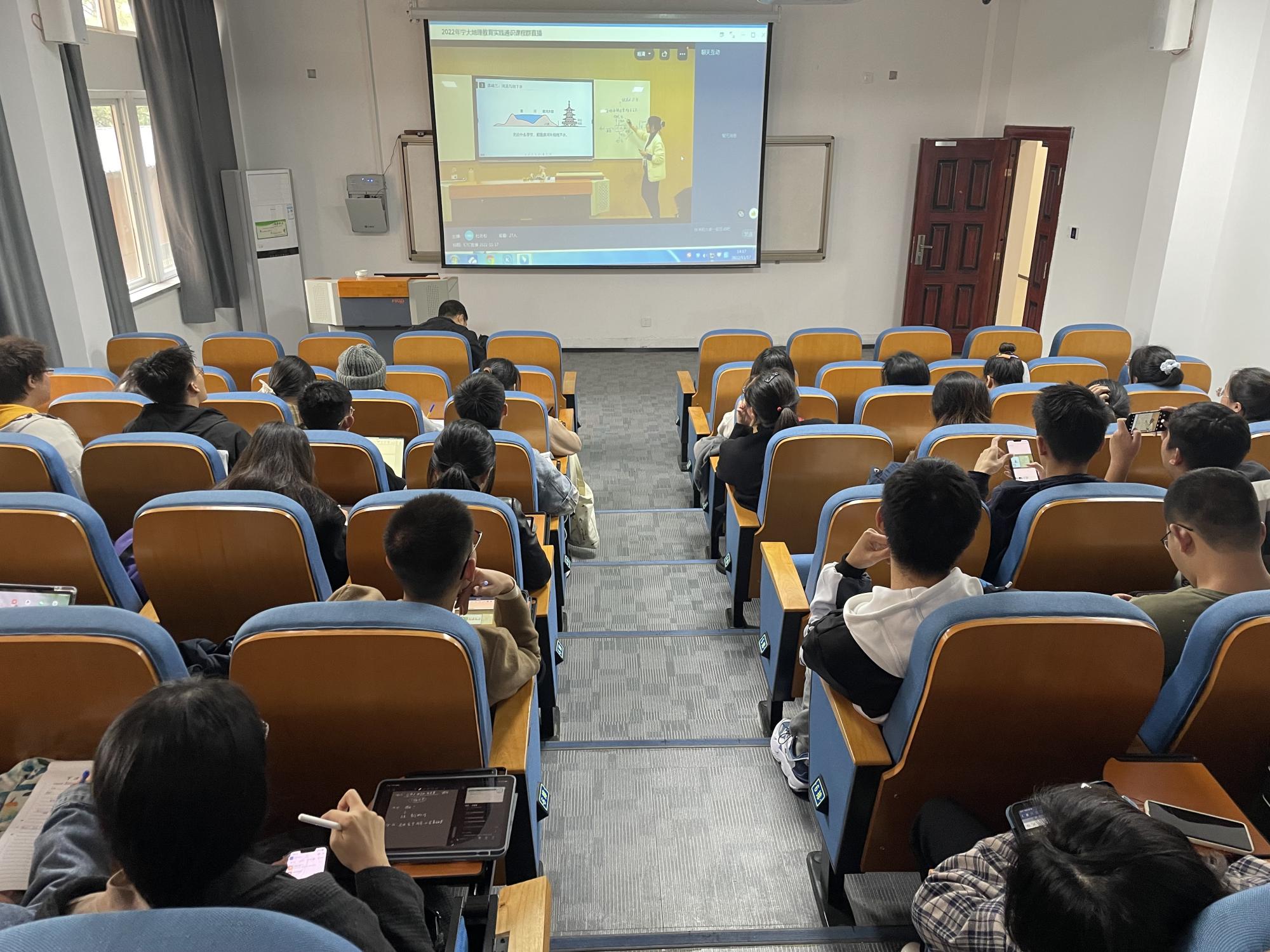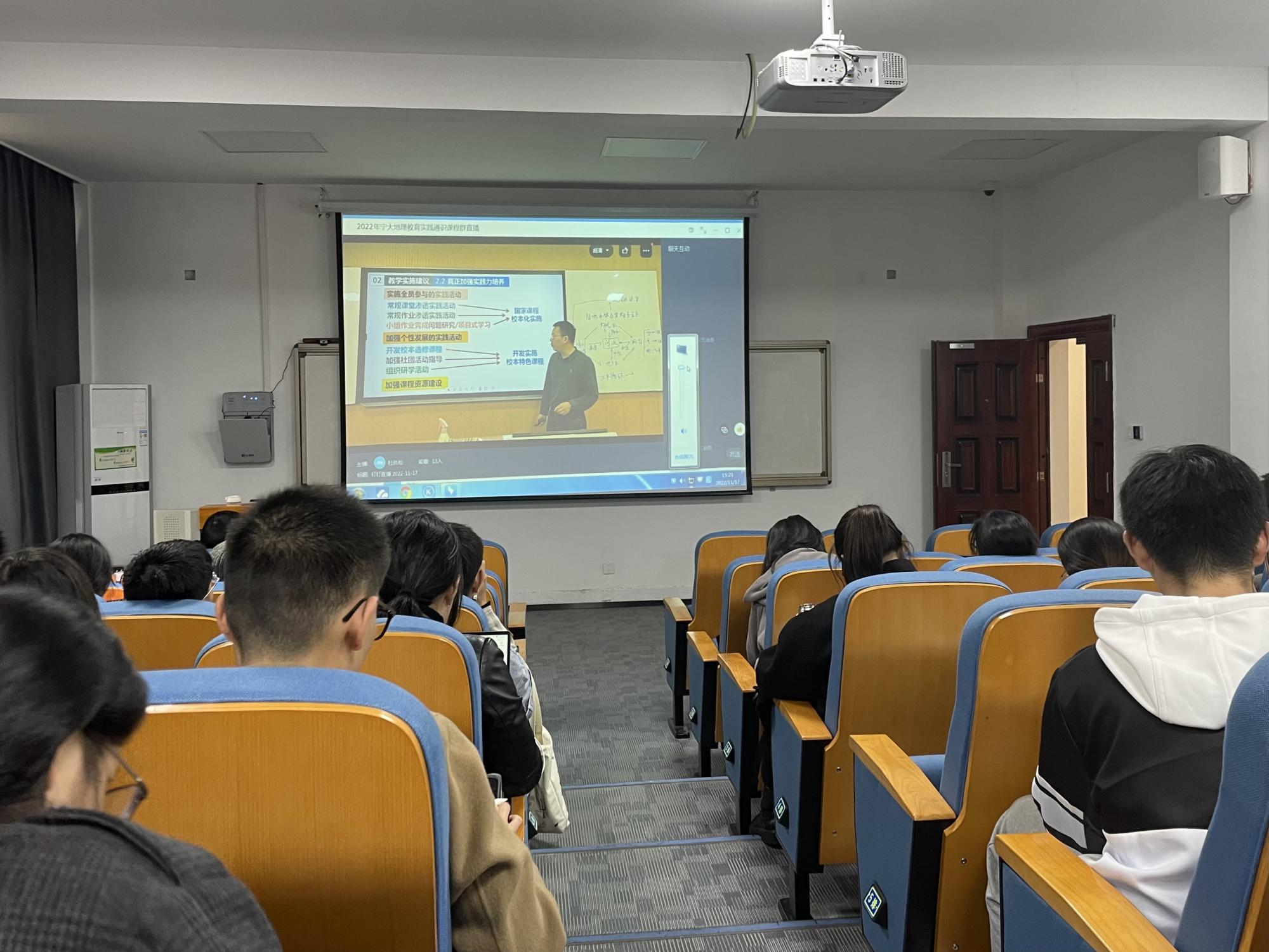 地理教育实习带队老师徐皓以及20级地理科学(师范)本科生在载物楼202教室一起线上倾听了由21级学科教学(地理)研究生李梦凡展示的《陆地水体间的相互关系》的公开课。经过前期的认真备课和指导教师的细致磨课,呈现了一节学习方式多样化的课堂教学。