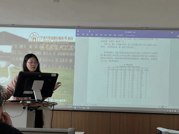 教学1班共分成5小组,围绕东钱湖这一核心区域自由选择要素并进行综合分析。经前期选题、文献阅读、大纲初稿撰写,各组代表分别在课堂上汇报本组的进展。本次课程汇报旨在考核学生小组分工的初步成果和区域分析研究的能力。