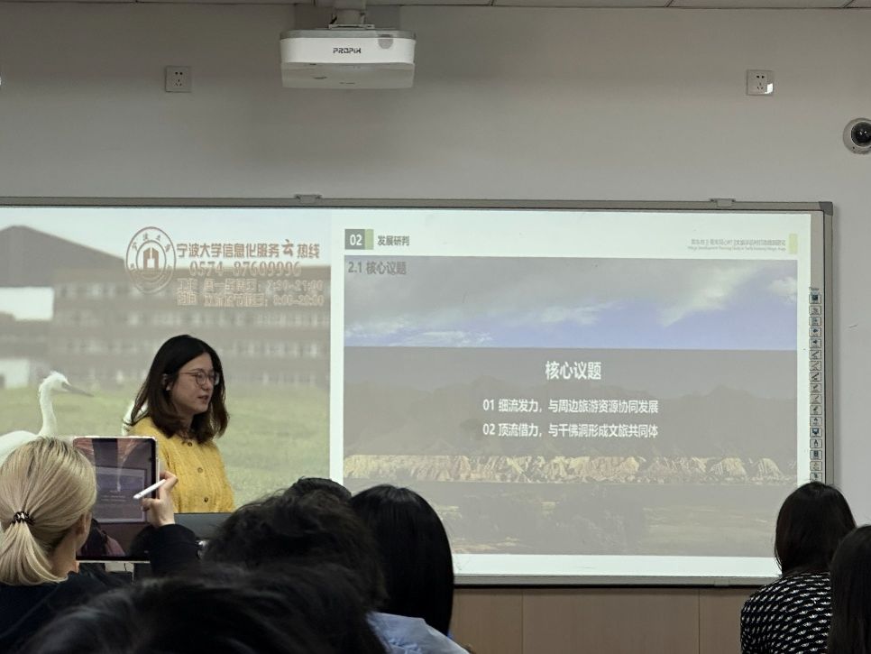 随后,牛梦云规划师围绕“细流发力,与周边旅游资源协同发展”和“顶流借力,与干佛洞形成文旅共同体”两大核心议题展开深入讲解。她强调,甬库同心村的未来发展应注重与周边旅游资源的联动,形成区域协同效应;同时,借助干佛洞这一重要文化资源,打造文旅共同体,提升村庄的整体吸引力和竞争力。