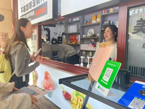 第一组成员在府前路历史文化街区进行了五次访谈,大致对商业街的业态、消费者的偏好进行了了解。作为第一批入选省非物质文化遗产主题街区,该街区商铺众多,店铺装修传统韵味十足,同类店铺特色各不相同。管理方还将非遗资源通过多元化方式转化成可体验、可分享、可消费的文旅元素,举办阳明古镇国潮节、戏曲专场演出等多项活动,其传统感和烟火气引人神往,吸引了来自五湖四海的游客。