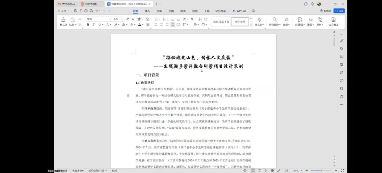 本组设计了东钱湖多学科融合研学项目。我们结合国家政策支持和东钱湖现有研学基础,提出一个多学科交叉融合的研学项目设计。我们通过实地考察和问卷调查,筛选出南宋石刻公园、陶公岛、韩岭老街等六个研学点,并设计了知识、能力和情感三个层面的研学目标。还准备开发水质检测、古建模型搭建等实践活动,增强学生的实践能力和文化认同感。也将通过与学校、家长和游客的交流,了解研学需求和期望,为优化研学项目提供宝贵意见。