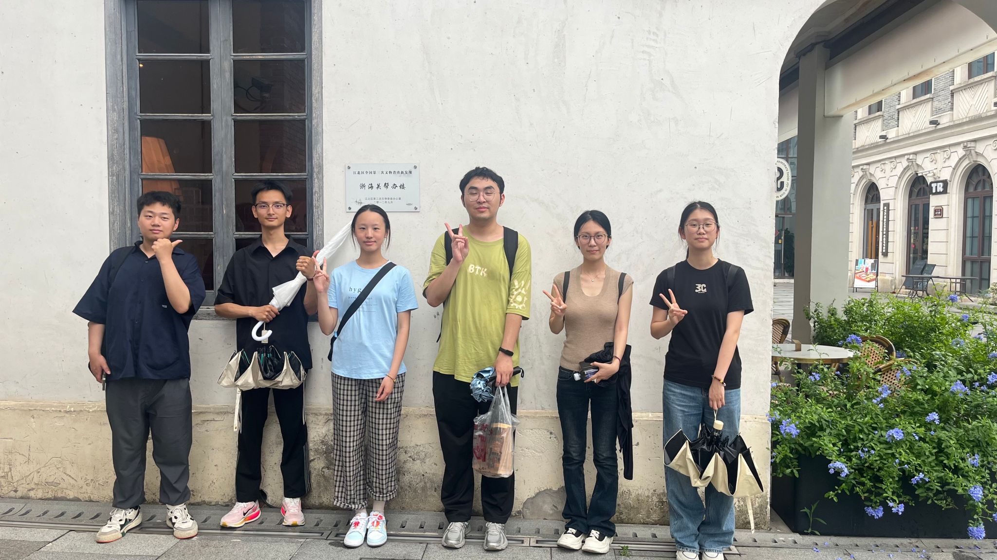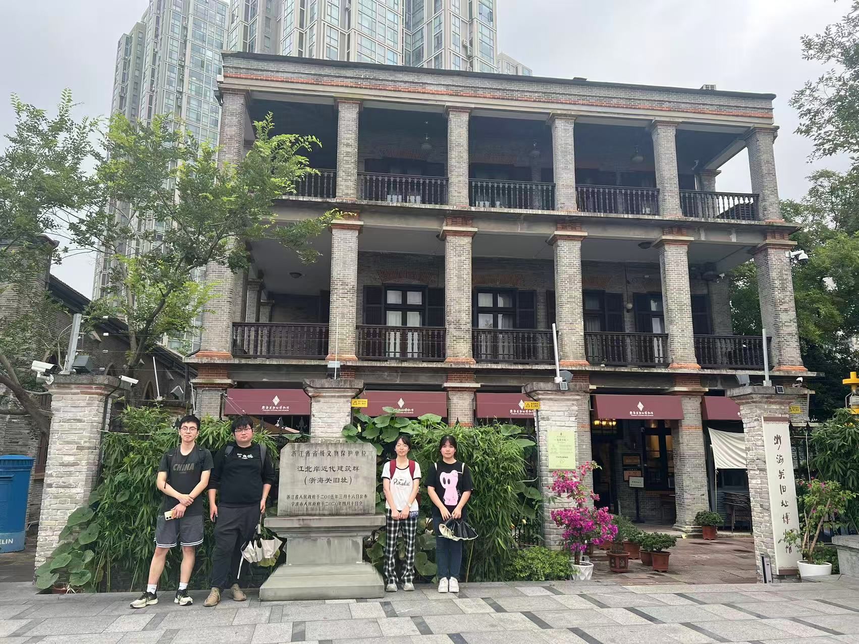 第四站、第五站,我们来到了文创港公园与老外滩。在姚学姐的讲解下,我们了解到了整个文创港片区的总体规划,以及现今的发展情况。在老火车北站的站前广场,我们小组进行了合影。随后,我们沿着甬江向着老外滩行进。并在浙海关旧址处拍摄小组合照。