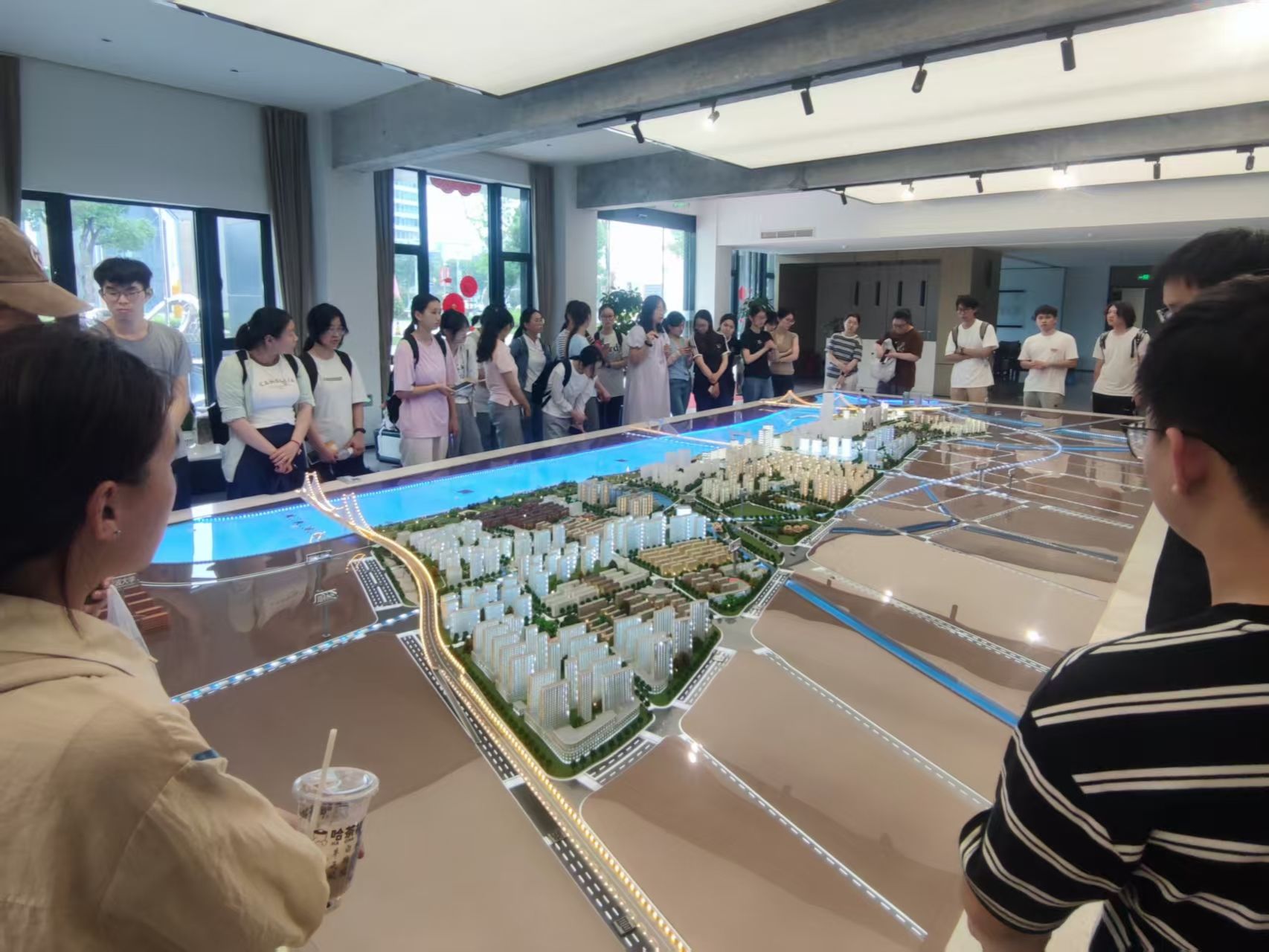 在文创港片区,同学们通过观察文创港大厅内的沙盘模型,邀请在此工作的亚洲AV
