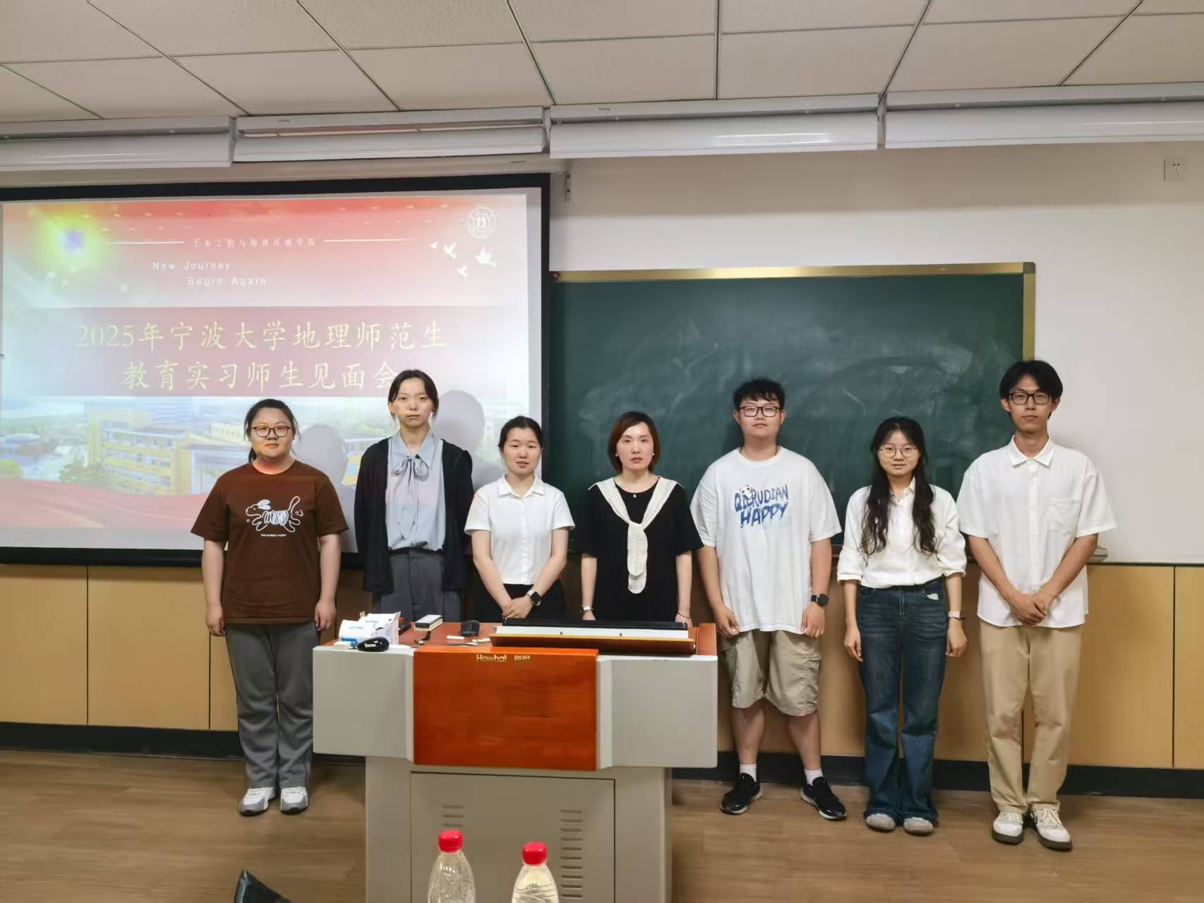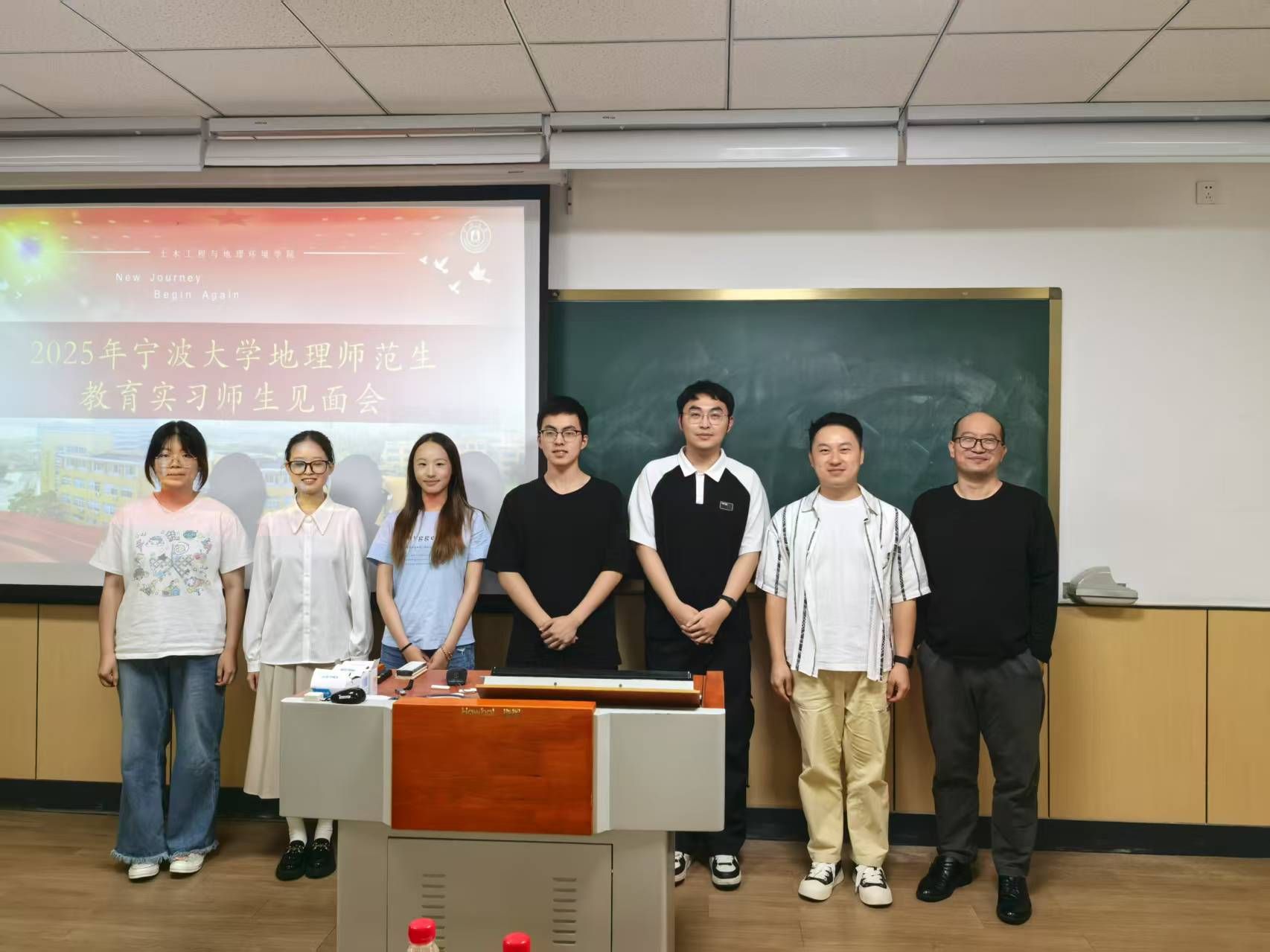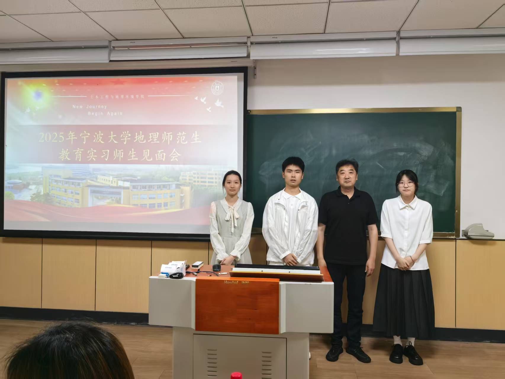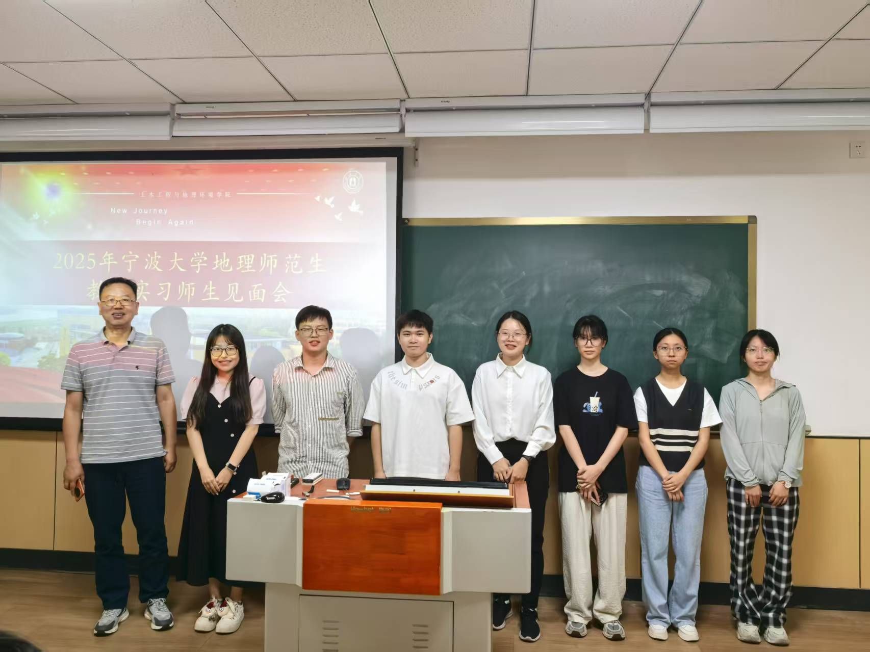 师范生技能大赛圆满落幕后,全体22级地理科学(师范)生们迎来了与下学期教育实习学校老师们的第一次见面会。在这次见面会上,实习学校的老师们不仅对我们未来的到来表示了热烈的欢迎,而且与各实习小队都进行了合影。通过这次师范生技能大赛与见面会,我们感受到了实习学校老师们的热情与专业,相信在下个学期的实习日子里,我们一定能够在实习学校老师们的指导下,不断提升自己的教育教学能力,为将来成为一名优秀的地理教师打下坚实的基础。