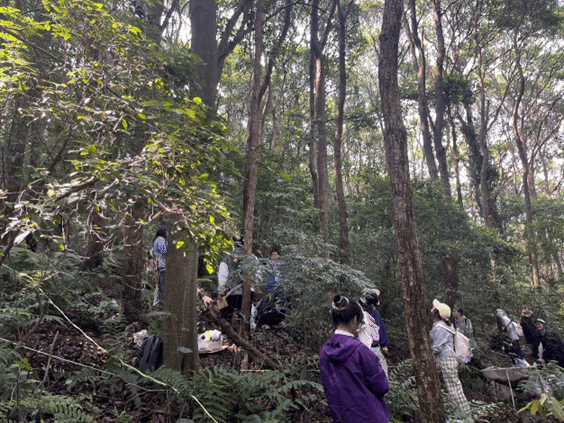 杨晓东老师带领1班同学在海拔400米的山顶处树林中建立三块样方,许洺山老师、罗旭老师和高梅香老师则带领2班同学在海拔200米的半山腰树林中建立三块样方,开展植物群落调查活动。