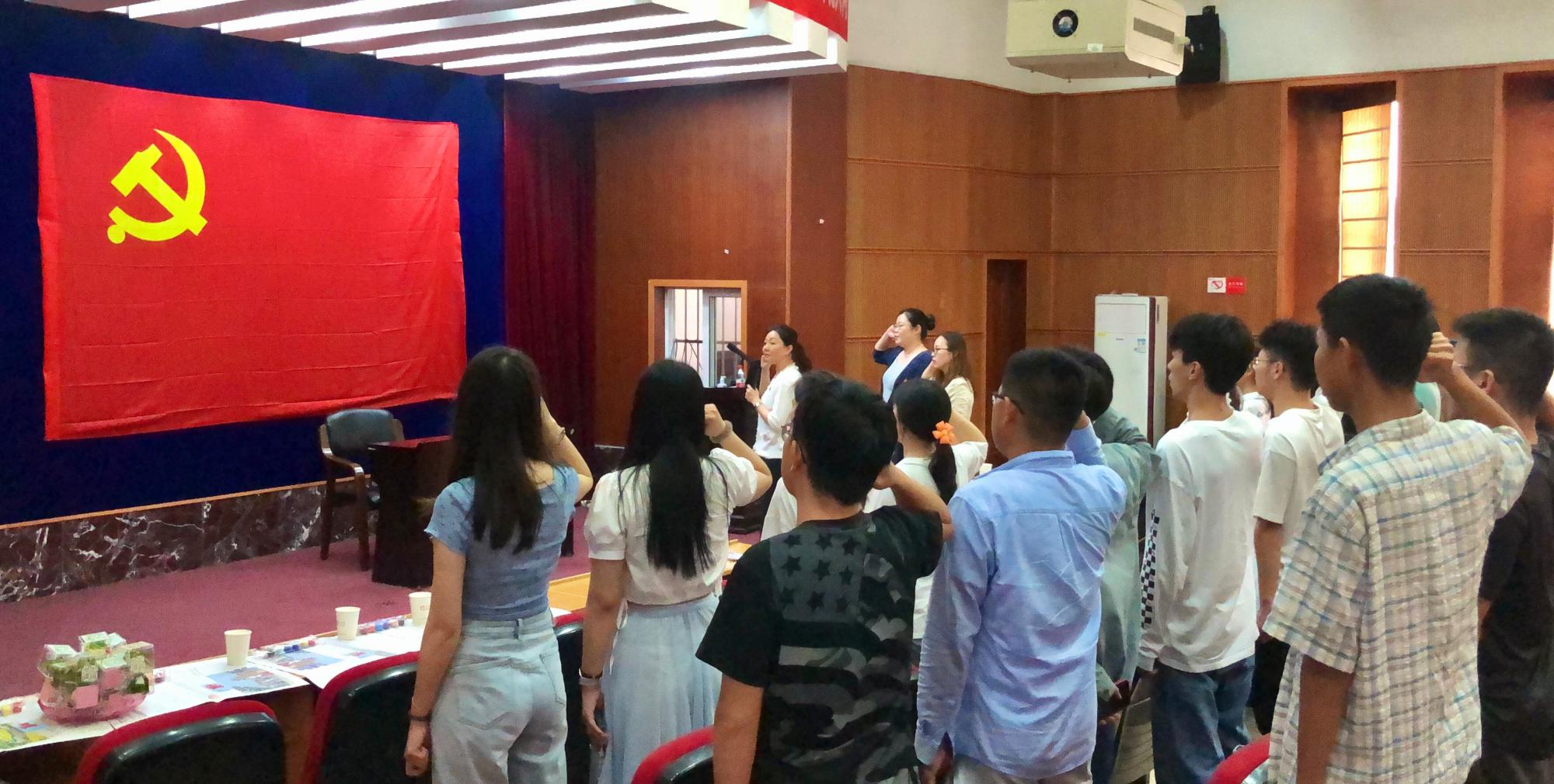 “我志愿加入中国共产党......”活动开始,全体预备党员在学院党委书记孔晓虹的带领下,高举右拳,面向鲜红党旗庄严宣誓,声音洪亮、铿锵有力。