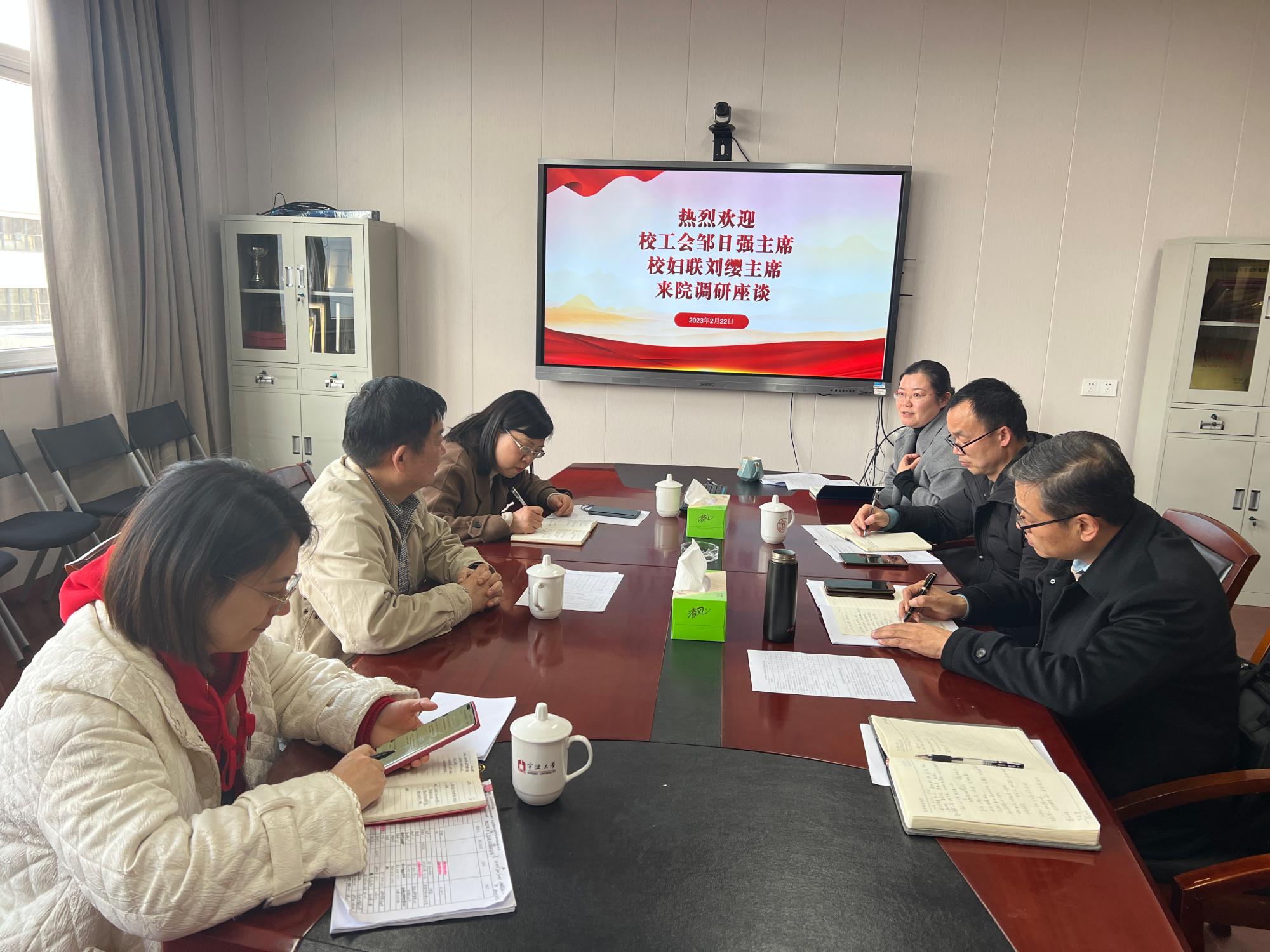 2月22日下午,校工会主席邹日强、妇联主席刘缨等一行到亚洲AV 调研。学院党委书记李加林、副书记朱剑琼、分工会主席严晓东等参加座谈。