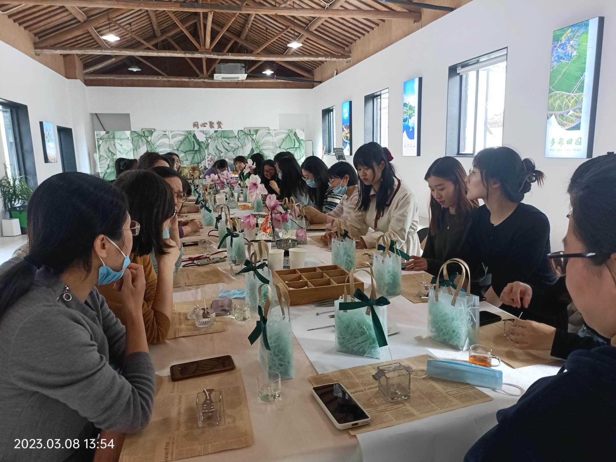 在这乍暖还寒的初春,3月8日下午,为充分展现女教工的巾帼风采,进一步提升女教工的审美意识和丰富女教工业余生活,亚洲AV 分工会举办了“春日暖香,美丽永恒”手作香薰蜡烛女工活动,院党委副书记朱剑琼以及女教工共三十余名参加。