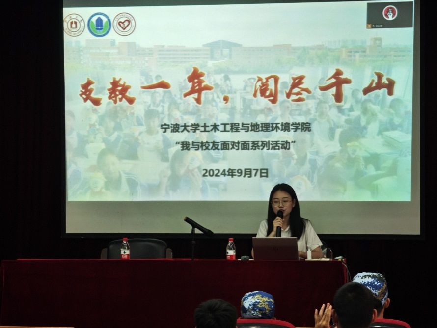 9月7日下午,在亚洲AV 一楼报告厅内, 2023届地理科学(师范)专业本科校友(已入读24级学科教育(地理)研究生)杨莹同学与2024届地理科学(师范)专业本科校友欧阳双同学受学院团委邀请,为2024级地理科学(师范)专业新生讲授和分享自己在研究生支教团的经历。
